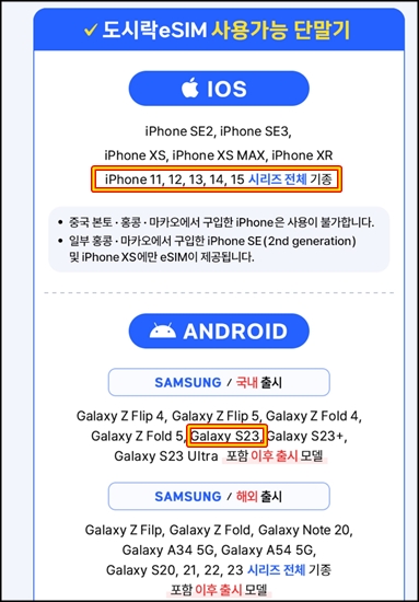 각각 esim 사용할 예정. 전화기가 모두 사용가능하다.
