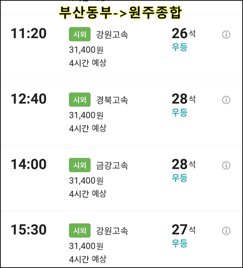 화요일 10시 부산에 도착하여 시외버스로 원주 이동
