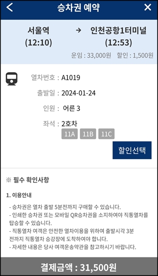 인천공항 공항철도 직통열차 AREX 시간표 티켓 예매 20% 할인 서울역 도심공항 터미널 이용 팁