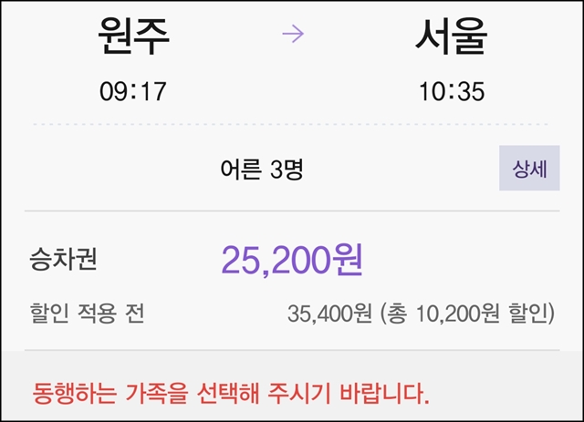 서원주역에서 강릉선과 함께 묶어서 서울역으로...