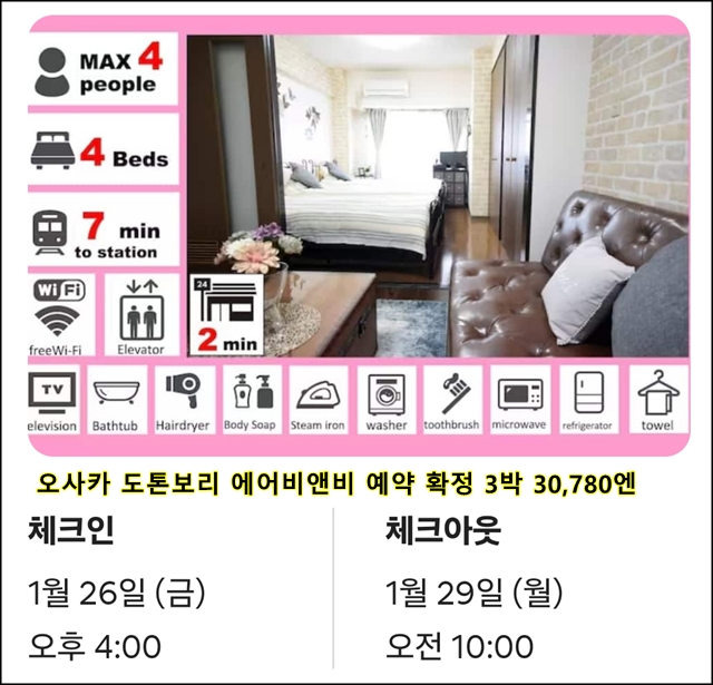 오사카 도톤보리 근처에서 에어비앤비 3박(금토일)