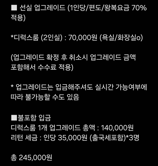세금도 1인당 3만5천원으로 항공권의 거의 반값.