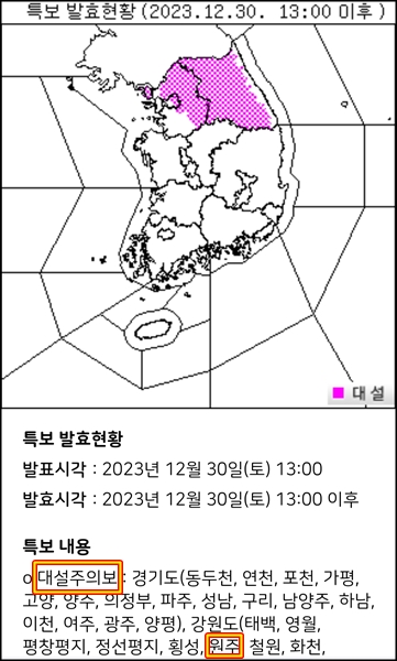 폭설로 바뀜