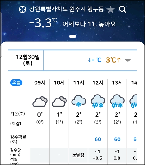 11시부터 눈비 예보