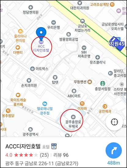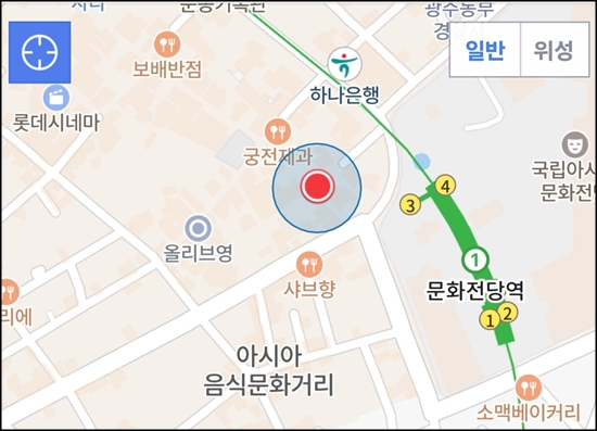 지도켜고 있으면 내가 어디있는지도 알려준다.