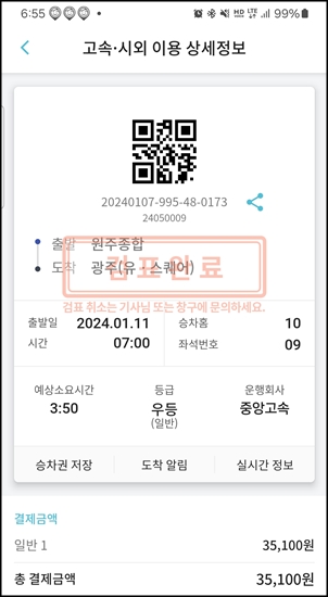 바뀐 후 고속버스 처음 타본다.