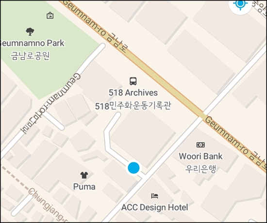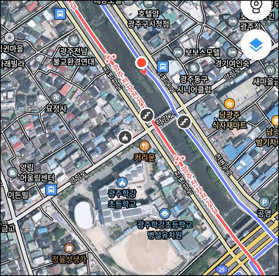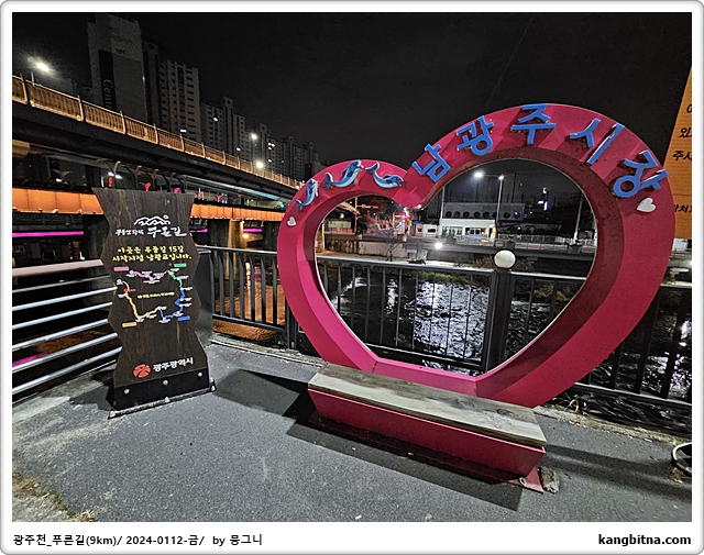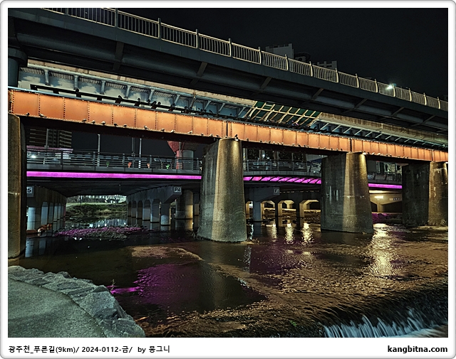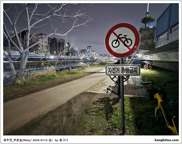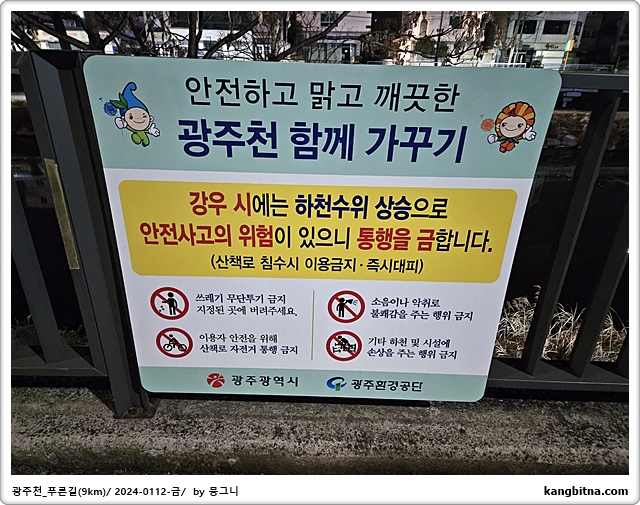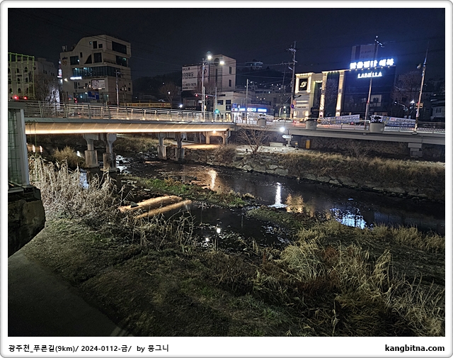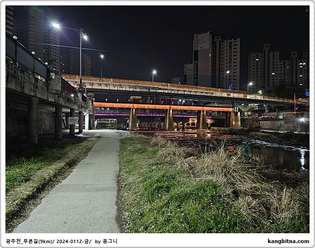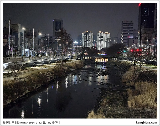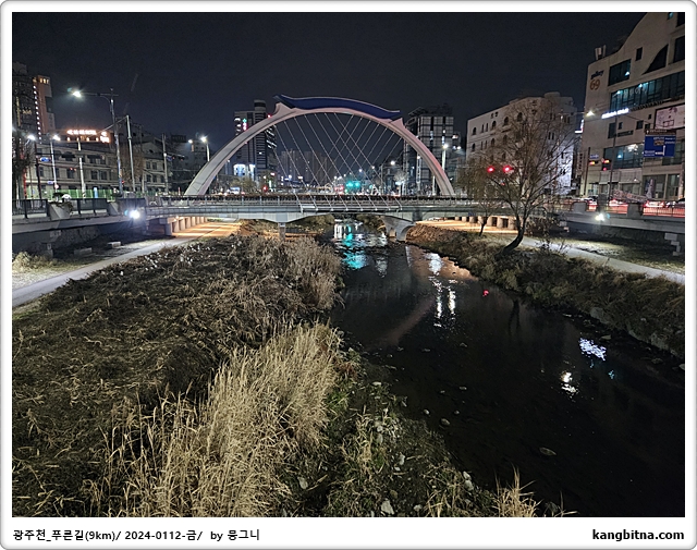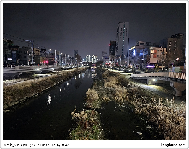 호텔에서 600미터 걸어서 광주천 진입