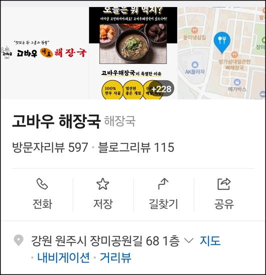 말끔한 해장국을 먹으려면 고바우 해장국...