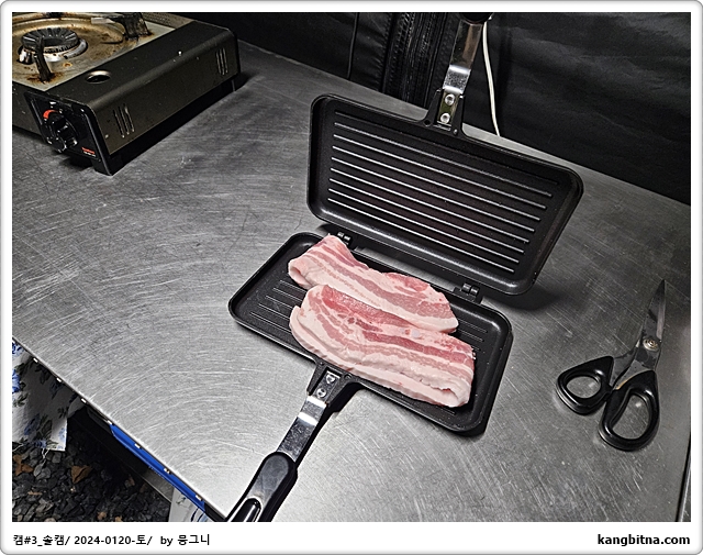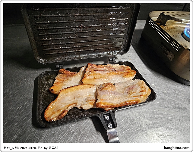 삽겹살 두줄을 겹쳐서 넣었다.