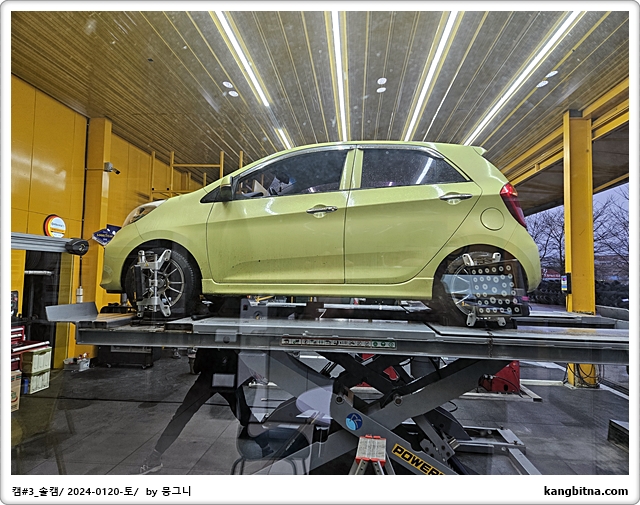 편마모가 발생한 앞타이어 교체하고 휠얼라이먼트 조정까지...