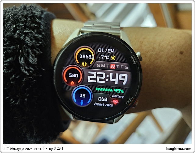 1만 8천보 걸었고, 나고야는 영하 7도에 눈내림.