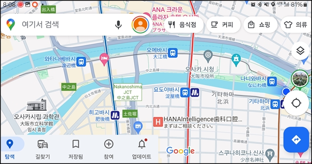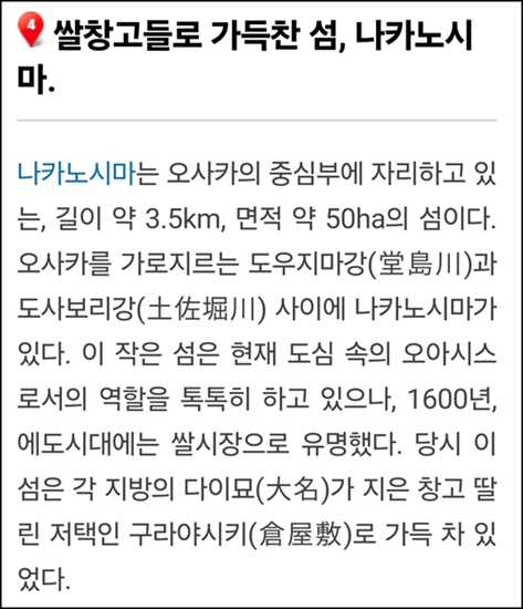 오사카 지도를 보면 중간에 보면 섬이 나온다.