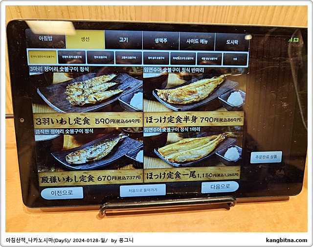 어제 봐뒀던 한가한 생선정식집에서 아침식사