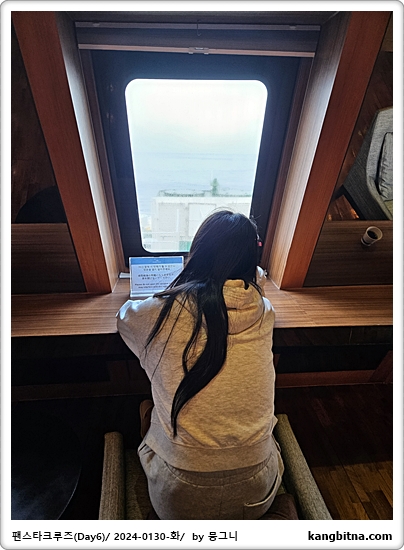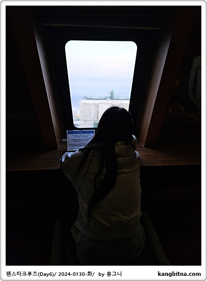 야간에는 항해에 방해가 된다고 해서 라운지의 창문을 모두 내림.