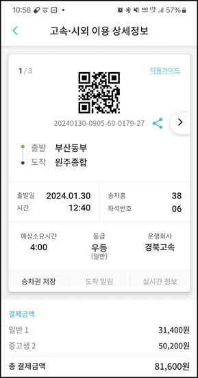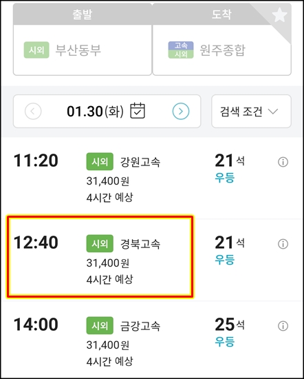4시에 원주종합터미널 도착