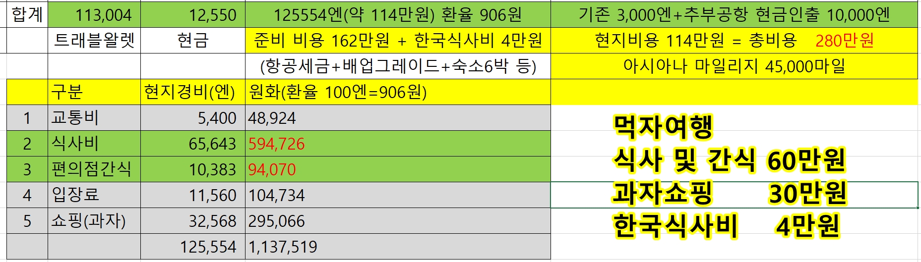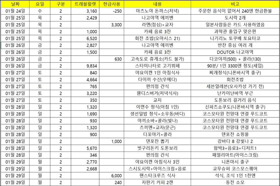 일일경비 하루 20만원 대부분 먹는데 사용하려고 계획했는데