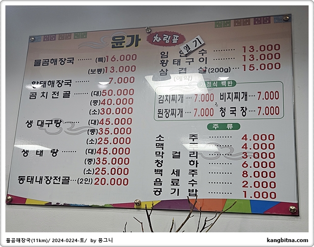 물곰해장국 대 주문