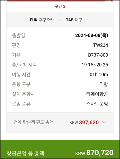 대구-오사카가 조금 더 비싸다.