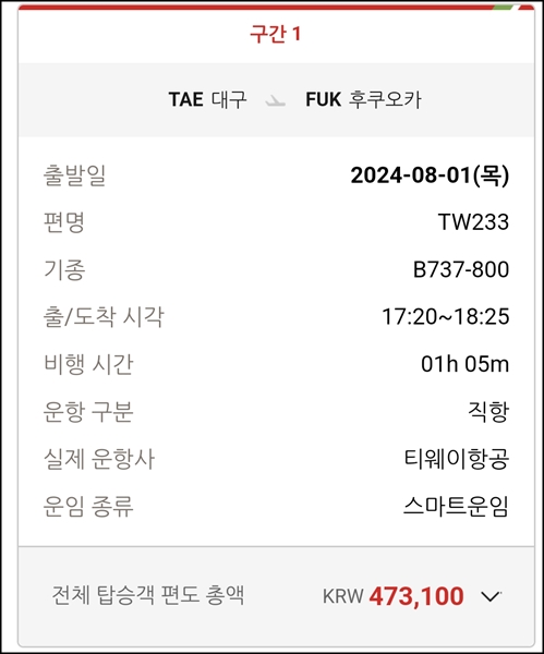 티웨이항공 검색