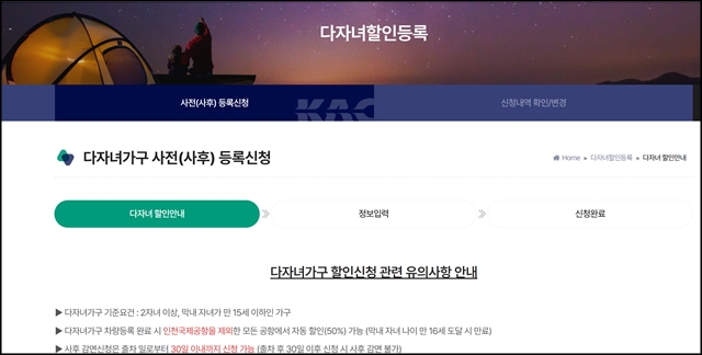 다자녀가구 할인신청 관련 유의사항 안내
