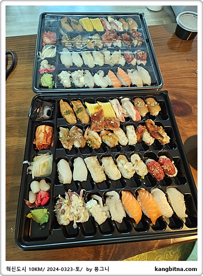 동네 새로 생긴 초밥집 가서 포장해 옴.