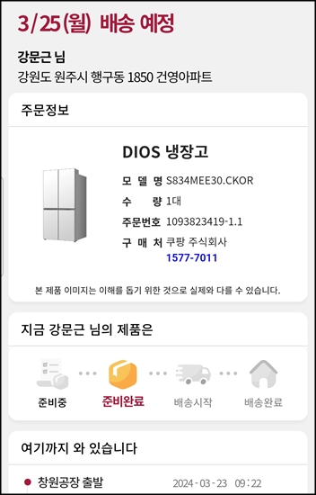어제 주문한 냉장고가 오늘 도착할 수도....