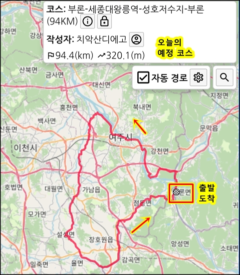 부론에 주차하고 출발
