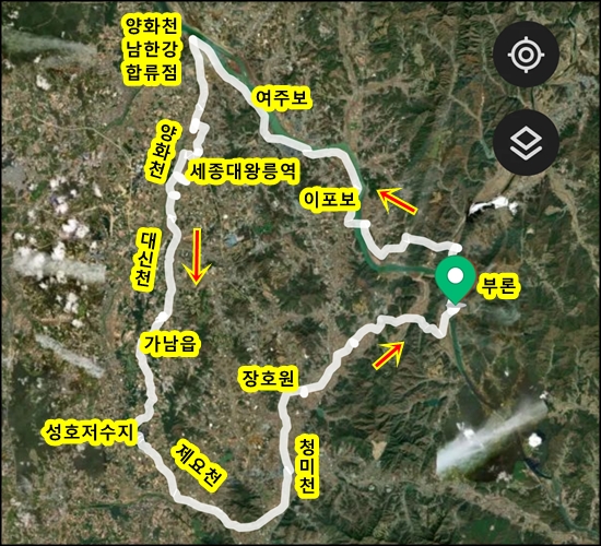 양화천 남한강 합류점까지 가서