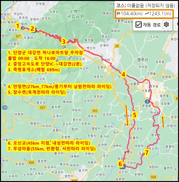 접선하기로 한 로드 친구가 늦어서 풍기읍 사무소에서 접선하기로 다시 약속