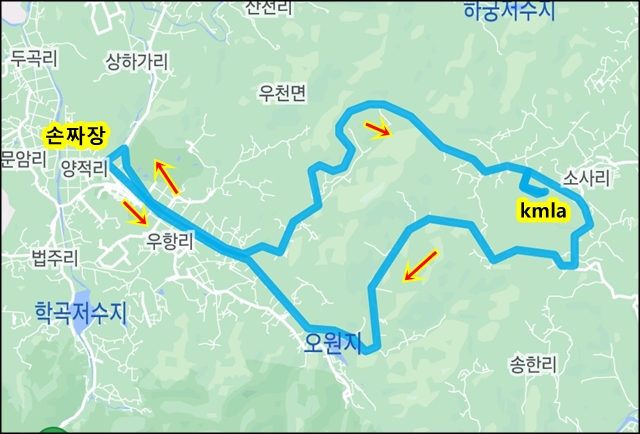 학교 뒤쪽 계곡길을 따라서 새말로 내려감