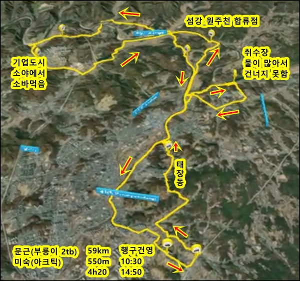 원주의 이곳저곳을 구경하는 라이딩으로 컨셉 잡음