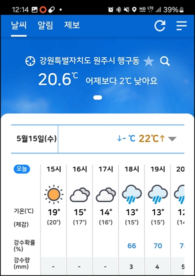 오후 비예보가 있어서