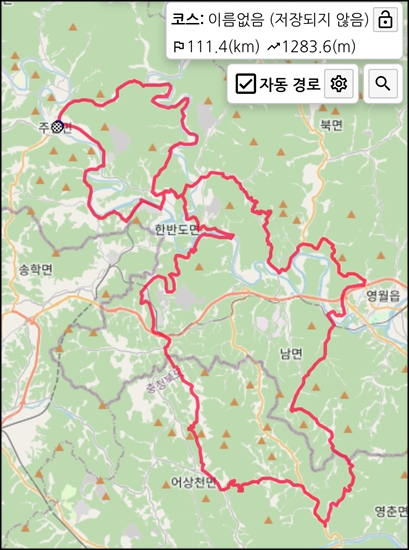 주천강에서 출발 평창강-서강-동강을 거친 후 다시 주천강으로 돌아오는 코스