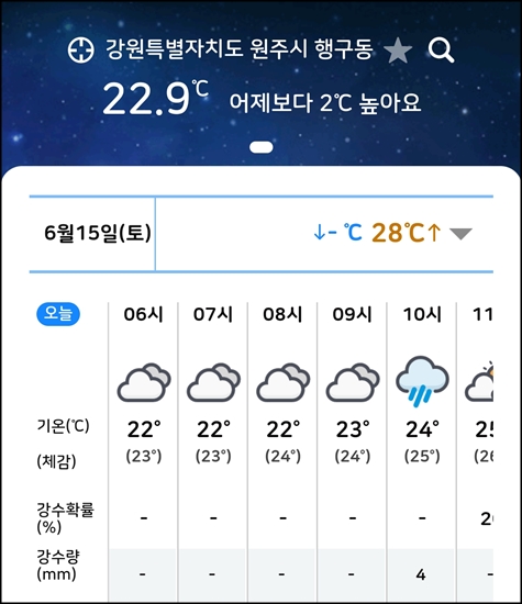 10시부터 비예보
