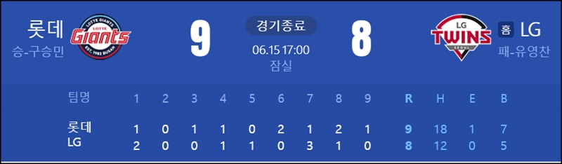 9:8 롯데승리