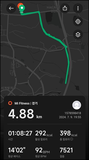저녁에 걸으러 나갔는데 비가 와서 단축 걷기