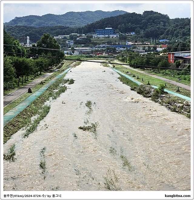 오전 비에 원주천 범람한 듯...