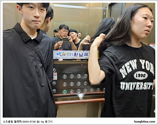오래간만에 4명 모두 엘리베이터 함께 타서