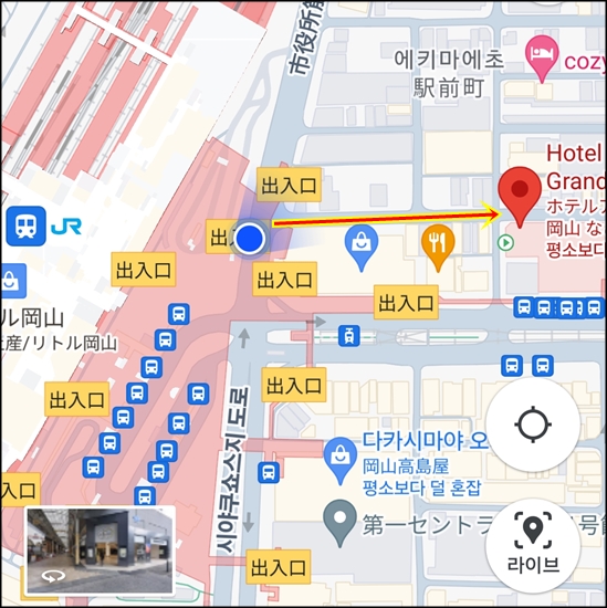 1시간 50분만에 오카야마 도착