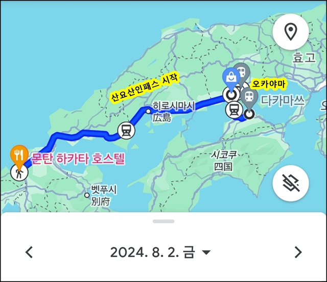 원래는 미야지마 거쳐서 오카야마로 가려고 했으나