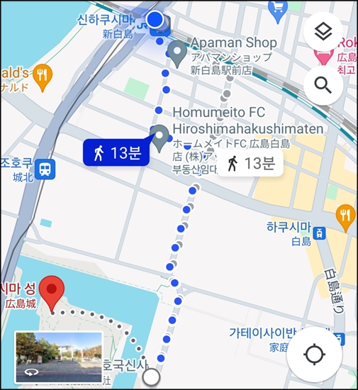 신하쿠시마역에서 히로시마성까지 걷는데 무지하게 더웠음.