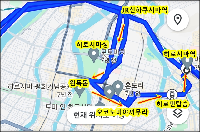 걸어서 히로시마성-원폭돔-혼도리-오코노미야끼무라 방문 후