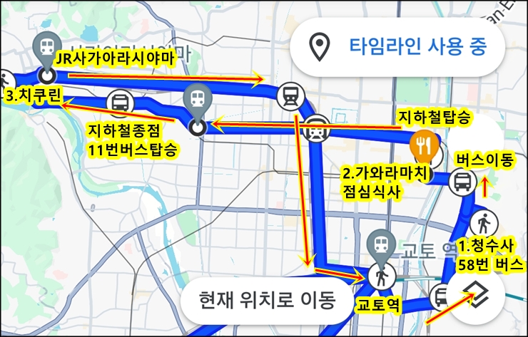 교토는 되도록 지하철, 전철, 걷기로 이동 추천