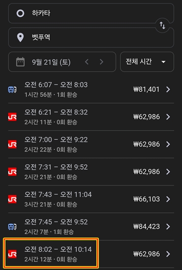 하카타에서 벳푸 기차로 가는법 JR 시간표, 소요시간