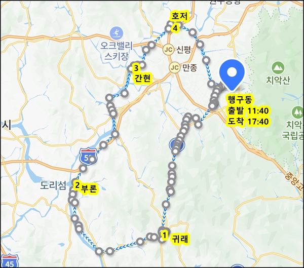 원주역-비두리-귀래 코스 대신 서곡-흥업-양안치-귀래 코스 선택