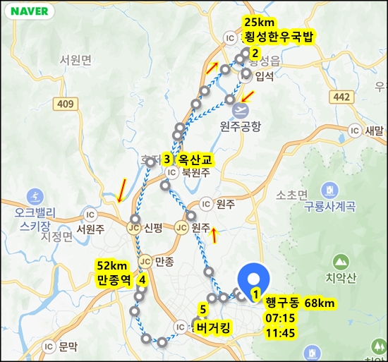다시 기업도시 거쳐서 만종역-원주역으로 코스 변경