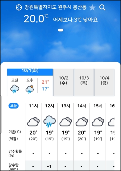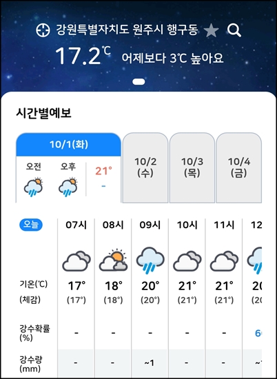 새벽부터 비예보 체크