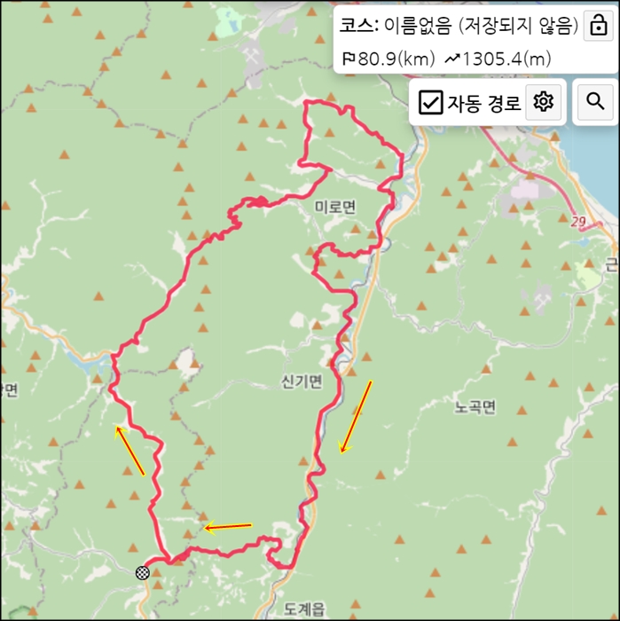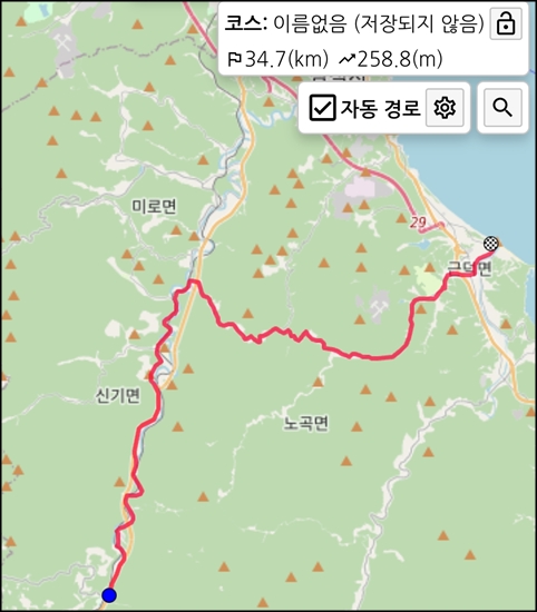 라이딩가즈아는 건의령을 넘는 길을 안내해주는데