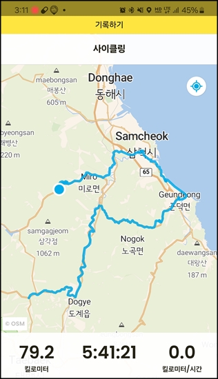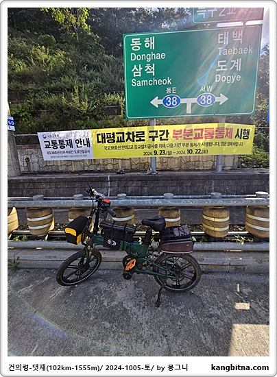 삼척에서 출발하여 댓재를 넘고 건의령 거쳐 복귀하는 95km 1,500m의 코스입니다.출발은 삼척시립박물관에서 했으며 출발 후 오십천 천변길을 따라 시내를 벗어나고 태백 도계방향으로 달립니다.