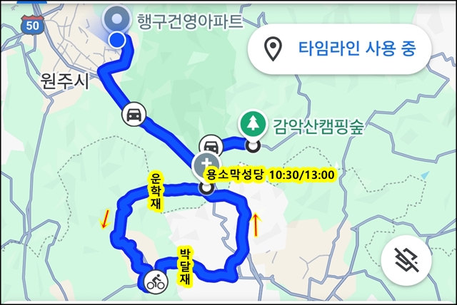 캠핑장에서 늦게 나와서 10시반 용소막 성당 출발